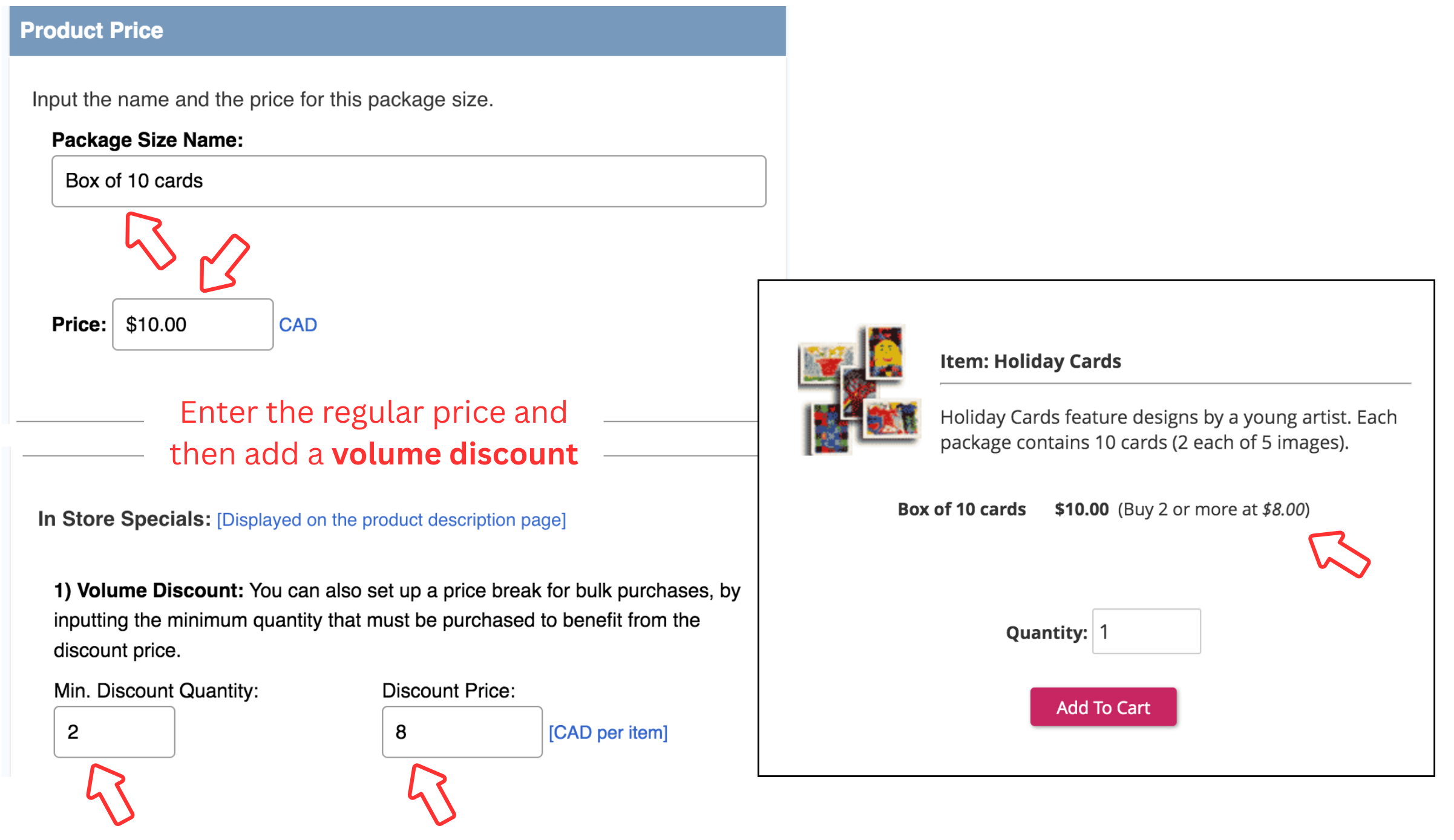 You can continue to offer price discounts for bulk purchases of any product in your eStore. Just input the minimum quantity that must be purchased, for your customers to benefit from the discount price. See example. -